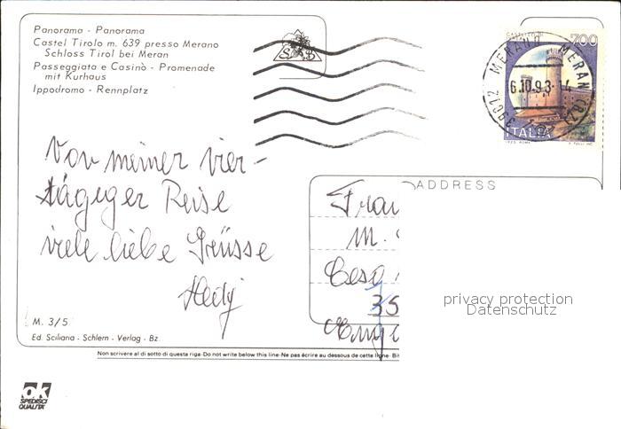 old postcard Merano Meran Schloss Rennplatz Kurhaus postalisch gelaufen Erhaltung siehe scans [AndreD76]
