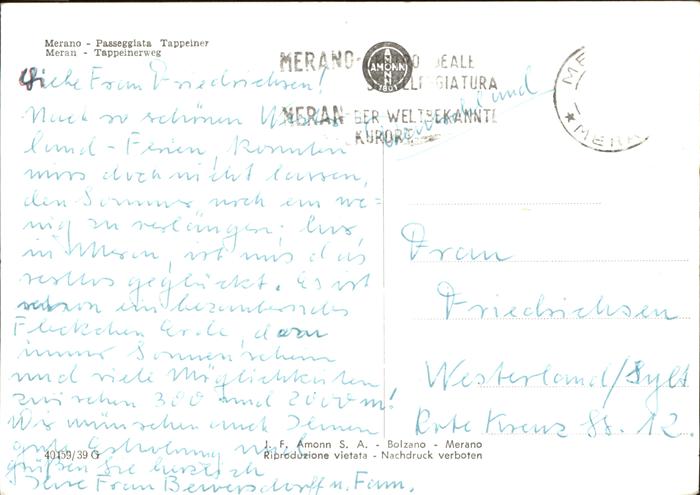 old postcard Merano Meran Tappeinerweg postalisch gelaufen