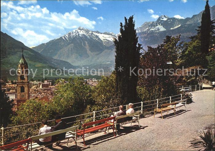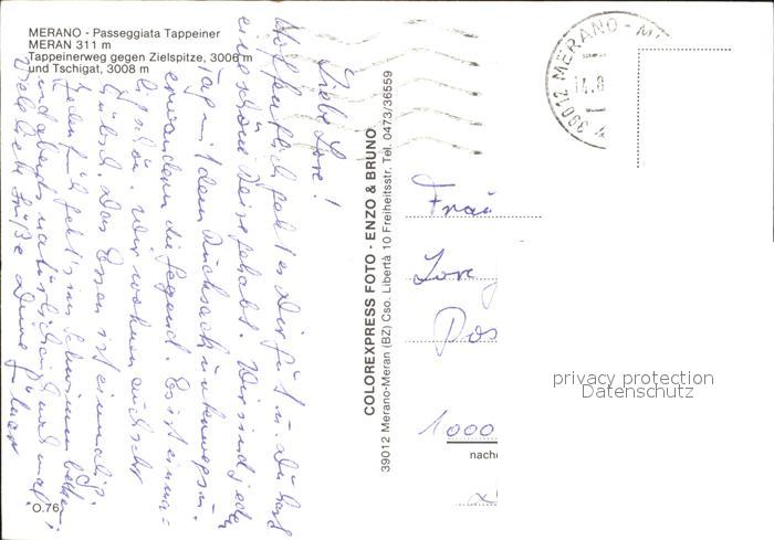 old postcard Merano Meran Tappeinerweg gegen Zugspitze postalisch gelaufen Erhaltung siehe scans