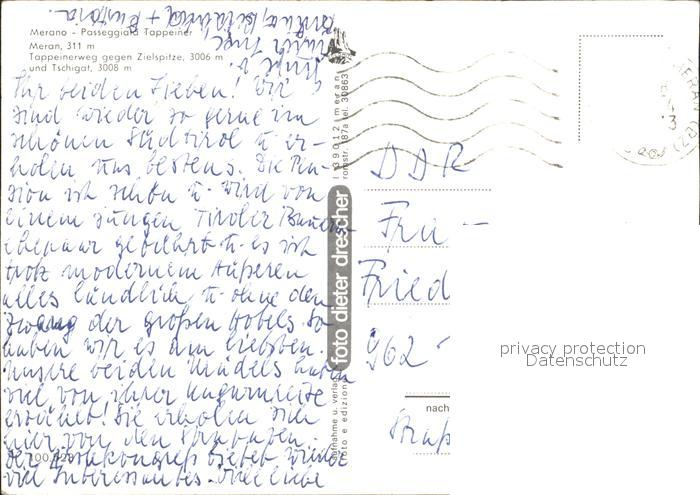 old postcard Merano Meran Tappeinerweg Zielspitze Tschigat postalisch gelaufen Erhaltung siehe scans