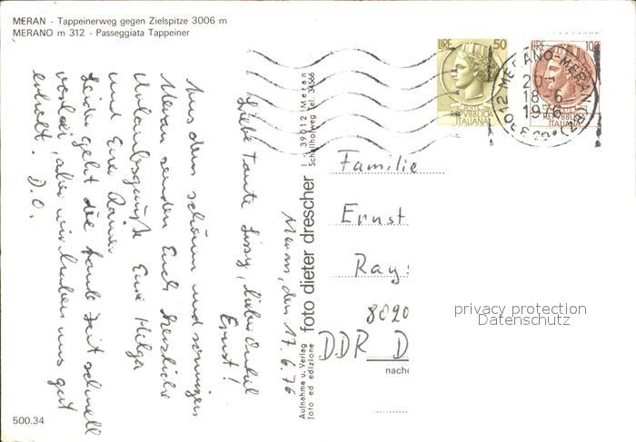old postcard Merano Meran Tappeinerweg Zielspitze postalisch gelaufen Erhaltung siehe scans