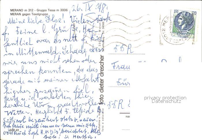old postcard Merano Meran Texelgruppe postalisch gelaufen Erhaltung siehe scans