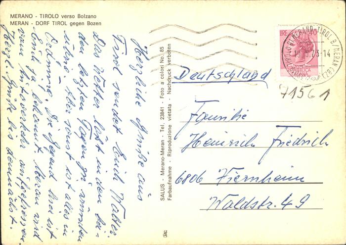 old postcard Merano Meran Tirolo verso Bolzano postalisch gelaufen Erhaltung siehe scans