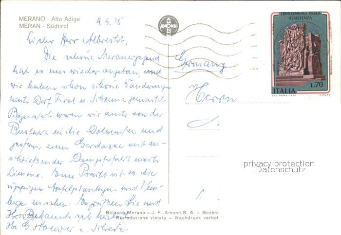 old postcard Merano Meran Vista parcial Chiesa Castello postalisch gelaufen Erhaltung siehe scans