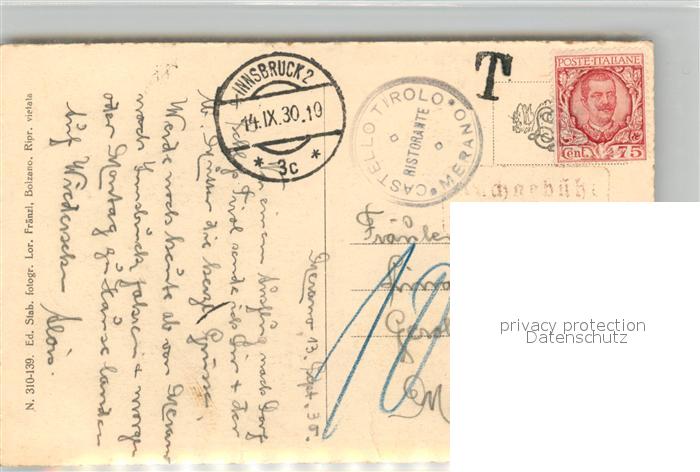 old postcard Merano Suedtirol Castello Tirolo postalisch gelaufen Erhaltung siehe scans [PaolaD17]
