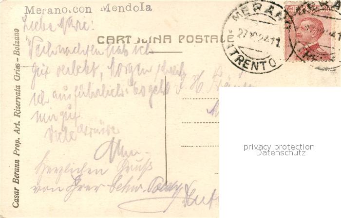 old postcard Merano Suedtirol Mendola postalisch gelaufen Erhaltung siehe scans [PaolaD17]