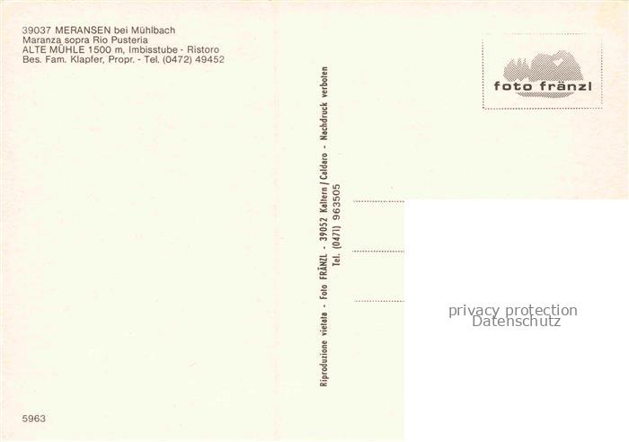 74132294 Meransen Maranza Muehlbach Bolzano Suedtirol IT Alte Muehle Imbisstube Ristoro postalisch nicht gelaufen Erhaltung siehe scans [FriedD77] KatCode: 11240