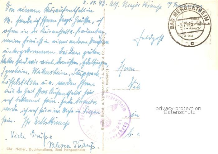 73105603 alte Postkarte Mergentheim Bad Deutschordenschloss postalisch gelaufen Feldpost Erhaltung siehe scans [KathaD81] KatCode: 11110008128007