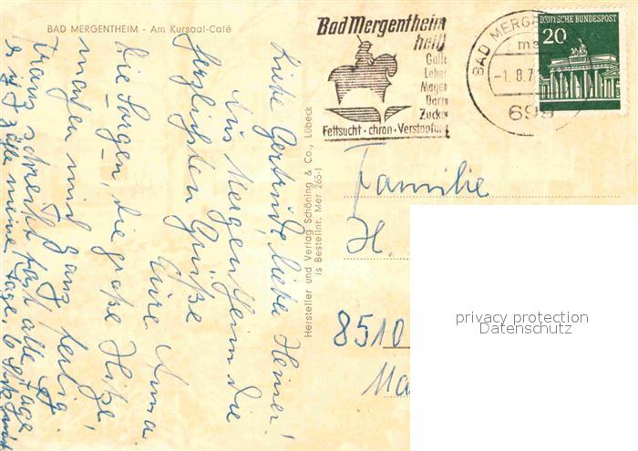 72777287 alte Postkarte Mergentheim Bad Kursaal Cafe postalisch gelaufen Erhaltung siehe scans [KathaD81] KatCode: 11110008128007