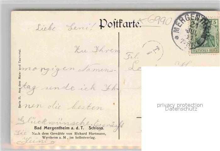 42874923 alte Postkarte Mergentheim Bad Schloss Gemaelde Richard Hartmann postalisch gelaufen Erhaltung siehe scans [KathaD81] KatCode: 11110008128007