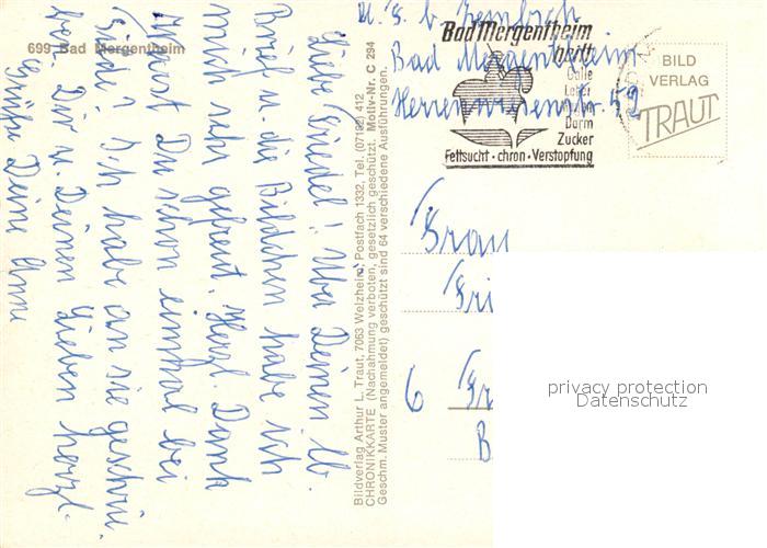 73122340 alte Postkarte Mergentheim Bad Schloss Rathaus Mineralquelle postalisch gelaufen Erhaltung siehe scans [KathaD81] KatCode: 11110008128007