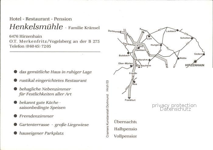 72470746 Merkenfritz Hotel Restaurant Pension Henkelsmuehle postalisch nicht gelaufen Werbekarte (keine Postkarte) Erhaltung siehe scans KatCode: 11110006440011