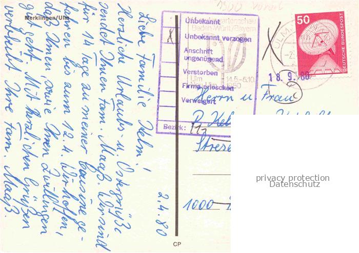 74050053 alte Postkarte Merklingen Rathaus postalisch gelaufen Erhaltung siehe scans [WerneD78] KatCode: 11110008425079