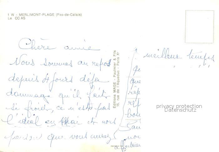 13638052 Merlimont Plage Le CCAS postalisch nicht gelaufen Erhaltung siehe scans [WerneD78] Wern Katcode 11170062462571