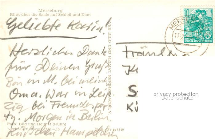 73572547 alte Postkarte Merseburg Saale Blick ueber die Saale auf Schloss und Dom postalisch gelaufen Erhaltung siehe scans [FriedD77] KatCode: 11110015088220