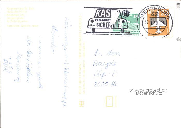 72381515 alte Postkarte Merseburg Saale Kirchenruine Haus der Kultur Krummes Tor Schlossgarten postalisch gelaufen Erhaltung siehe scans KatCode: 11110015088220