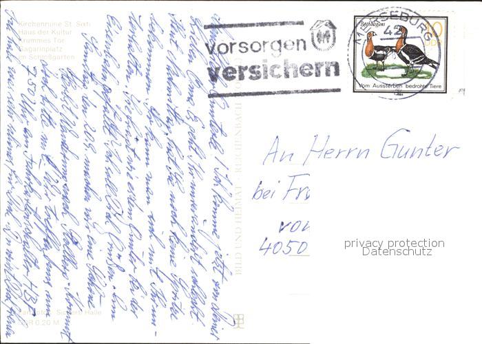 72373107 alte Postkarte Merseburg Saale Kirchenruine St Sixti Haus der Kultur Krummes Tor Gagarinplatz Schlossgarten Denkmal postalisch gelaufen Erhaltung siehe scans KatCode: 11110015088220