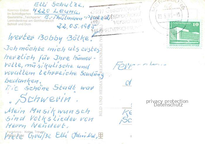 74075309 alte Postkarte Merseburg Saale Sachsen-Anhalt Kosmos Eisbar Schlossgarten Gaststaette Teichperle Lenindenkmal Schloss und Dom postalisch gelaufen Erhaltung siehe scans [WerneD78] KatCode: 11110015088220