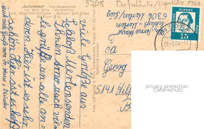 73693788 alte Postkarte Merten Sieg Schlosskirche postalisch gelaufen Erhaltung siehe scans [FriedD77] KatCode: 11110005382016