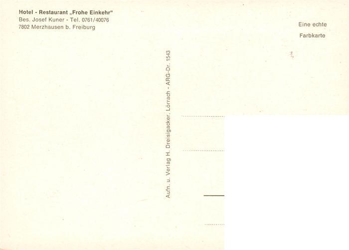 73932068 Merzhausen Freiburg Breisgau Hotel Restaurant Frohe Einkehr Panorama Schwarzwald postalisch nicht gelaufen Erhaltung siehe scans [FriedD77] KatCode: 11110008315073