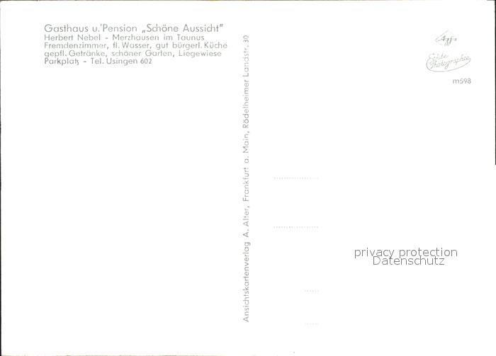 31715277 Merzhausen Taunus Gasthaus Pension Schoene Aussicht Herbert Nebel postalisch nicht gelaufen Erhaltung siehe scans KatCode: 11110006434011