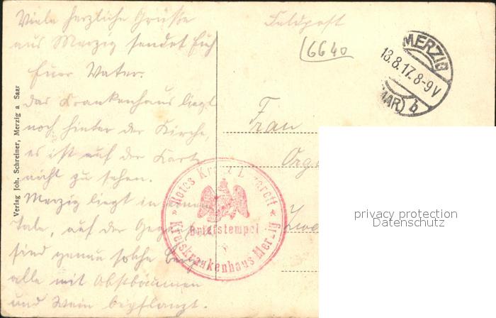 41792144 alte Postkarte Merzig Ortsansicht postalisch gelaufen Feldpost Erhaltung siehe scans KatCode: 11110010042113