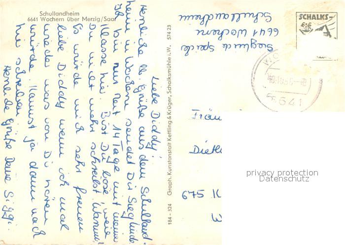 73744119 alte Postkarte Merzig Schullandheim Wochern Kapelle Speiseraum postalisch gelaufen Erhaltung siehe scans [FriedD77] KatCode: 11110010042113