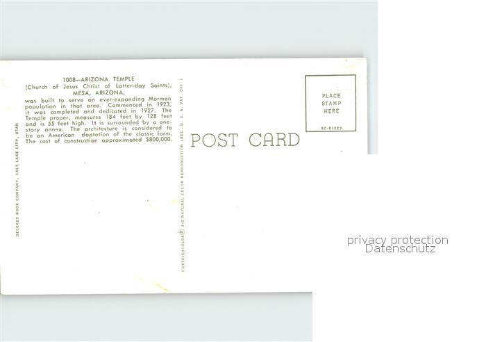72329294 Mesa Arizona Arizona Temple postalisch nicht gelaufen Erhaltung siehe scans KatCode: 14140030000000