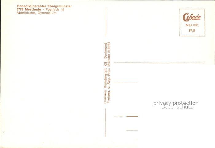 72067802 Meschede Benediktinerabtei Koenigsmuenster postalisch nicht gelaufen Erhaltung siehe scans KatCode: 11110005958004