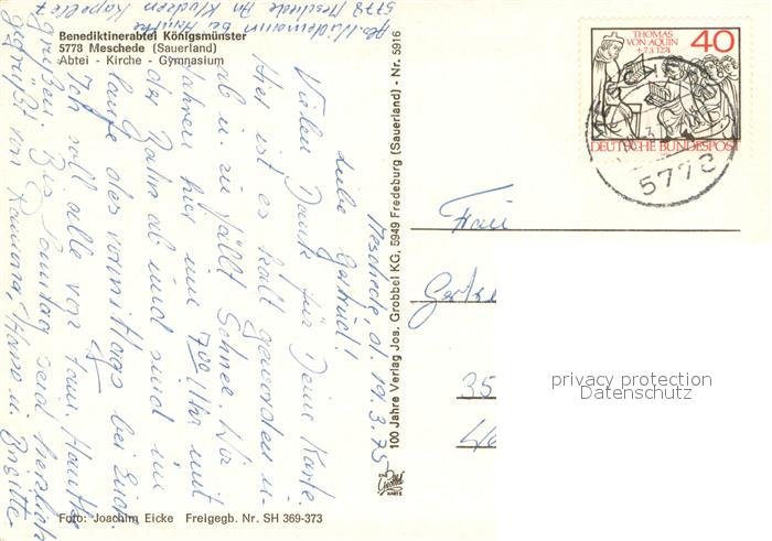 73715017 alte Postkarte Meschede Benediktinerabtei Koenigsmuenster postalisch gelaufen Erhaltung siehe scans [LiesaD40] KatCode: 11110005958004