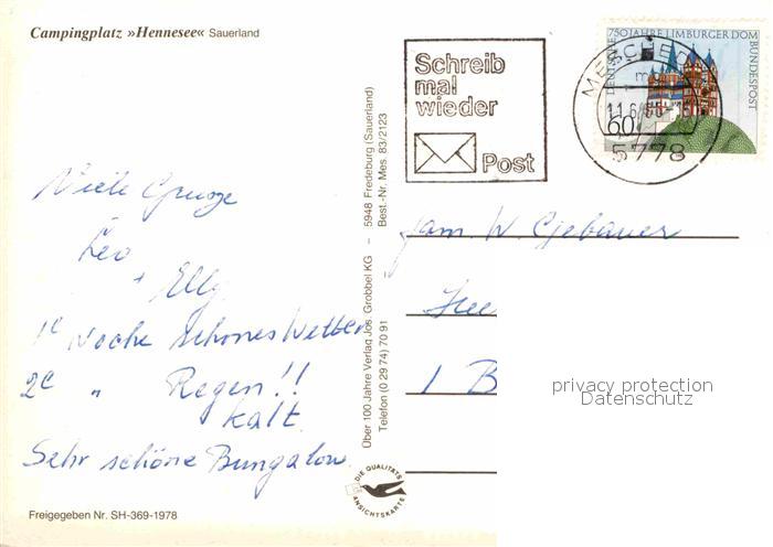 72818212 alte Postkarte Meschede Campingplatz Hennesee postalisch gelaufen Erhaltung siehe scans [NatalD47] KatCode: 11110005958004