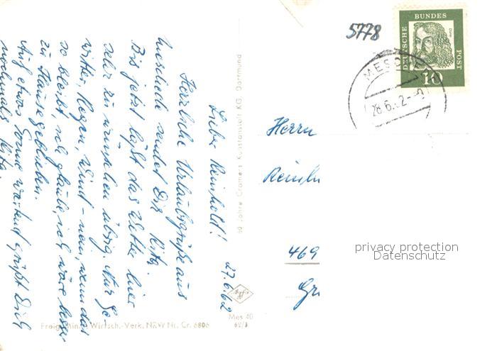 73706722 alte Postkarte Meschede Fliegeraufnahme postalisch gelaufen Erhaltung siehe scans [WerneD78] KatCode: 11110005958004