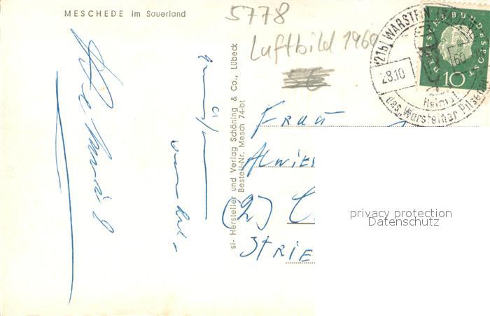 73695271 alte Postkarte Meschede Fliegeraufnahme postalisch gelaufen Erhaltung siehe scans [WerneD78] KatCode: 11110005958004