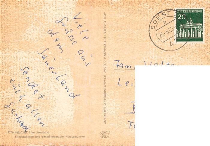 73942823 alte Postkarte Meschede Friedenskirche Benediktinerabtei Koenigswinter postalisch gelaufen Erhaltung siehe scans [WerneD78] KatCode: 11110005958004