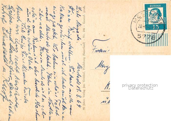 73672513 alte Postkarte Meschede Gesamtansicht Hennesee Kapelle postalisch gelaufen Erhaltung siehe scans [FriedD77] KatCode: 11110005958004