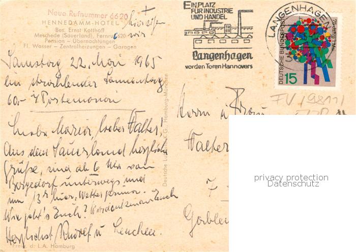 73836783 alte Postkarte Meschede Hennedamm Hotel Fliegeraufnahme postalisch gelaufen Erhaltung siehe scans [FriedD77] KatCode: 11110005958004