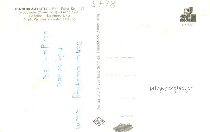 73695266 Meschede Hennedamm Hotel Seepartie postalisch nicht gelaufen Erhaltung siehe scans [WerneD78] KatCode: 11110005958004