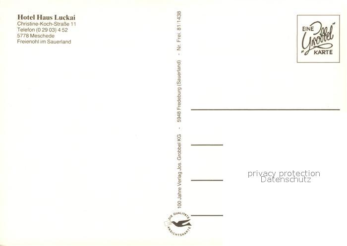 73045358 Meschede Hotel Haus Luckai Gastraeume Fliegeraufnahme postalisch nicht gelaufen Erhaltung siehe scans [WerneD78] KatCode: 11110005958004