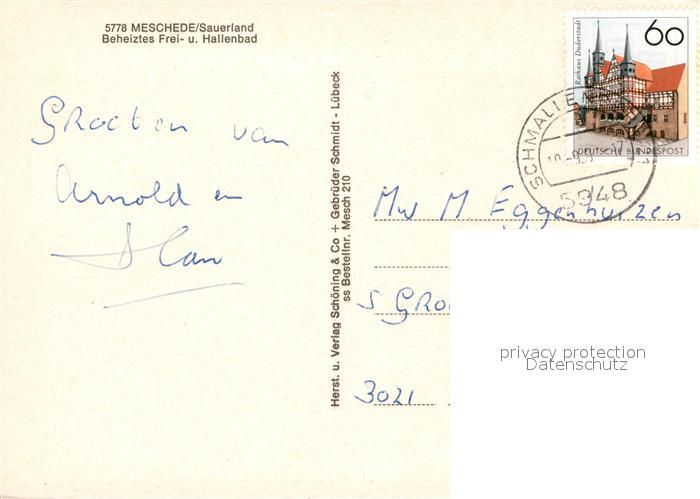 72929439 alte Postkarte Meschede Stadtbad Fliegeraufnahme postalisch gelaufen Erhaltung siehe scans [LiesaD40] KatCode: 11110005958004