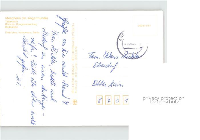 72391478 alte Postkarte Mescherin Bungalows Strand postalisch gelaufen Erhaltung siehe scans KatCode: 11110012073393