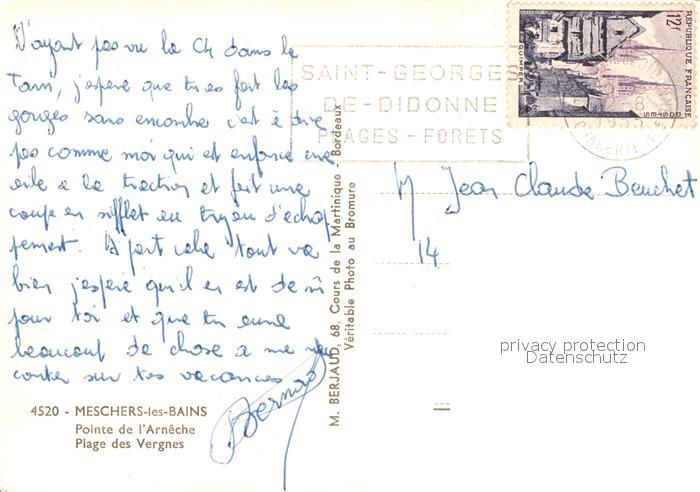 13143546 carte postale Meschers-sur-Gironde Pointe de Arneche Plage Vergnes postalisch gelaufen Erhaltung siehe scans [NatalD47] KatCode: 11170017417230
