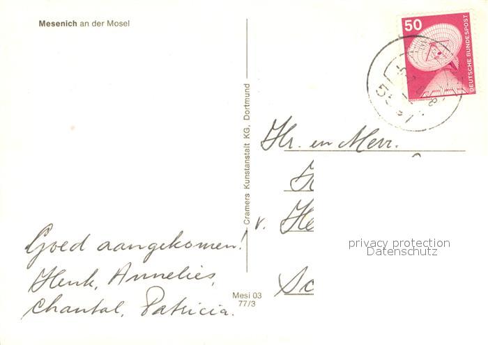 73673203 alte Postkarte Mesenich Cochem Panorama Blick ueber die Mosel Binnenschifffahrt postalisch gelaufen Erhaltung siehe scans [FriedD77] KatCode: 11110007135060