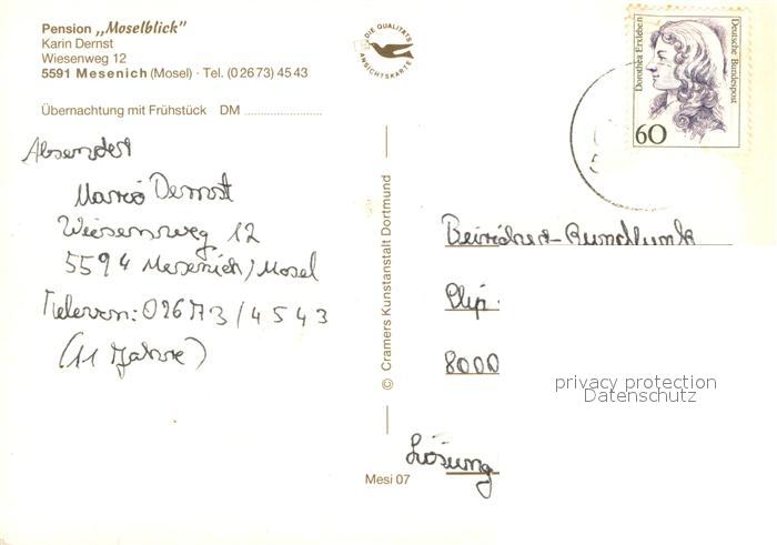 73655369 alte Postkarte Mesenich Cochem Pension Moselblick postalisch gelaufen Erhaltung siehe scans [FriedD77] KatCode: 11110007135060