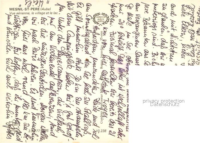 13622515 Mesnil-Saint-Pere Vue aerienne le village et le lac postalisch nicht gelaufen Erhaltung siehe scans [WerneD78] Wern Katcode 11170010310238