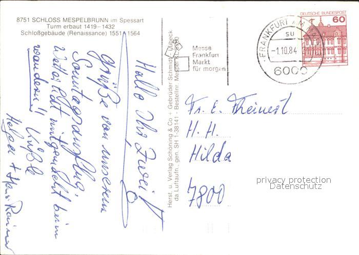 72334898 alte Postkarte Mespelbrunn Fliegeraufnahme Schloss postalisch gelaufen Erhaltung siehe scans KatCode: 11110009671141
