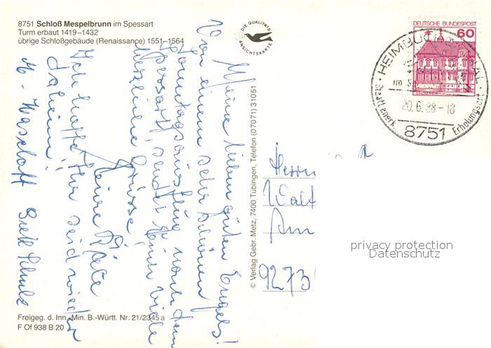 73097553 alte Postkarte Mespelbrunn Fliegeraufnahme Schloss postalisch gelaufen Erhaltung siehe scans [NatalD47] KatCode: 11110009671141