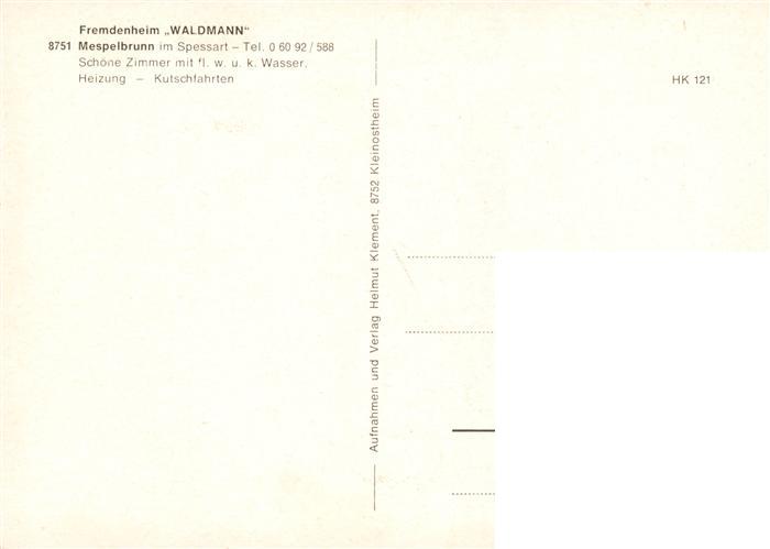 73905784 Mespelbrunn Fremdenheim Waldmann Gaststube Pferdebus postalisch nicht gelaufen Erhaltung siehe scans [FriedD77] KatCode: 11110009671141