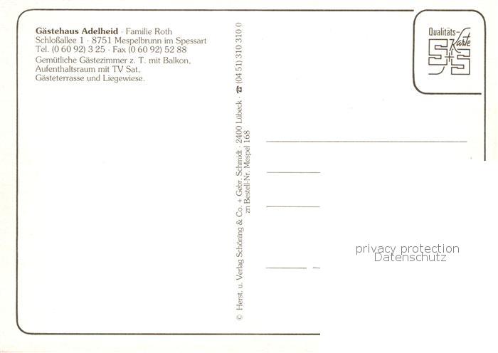 73845848 Mespelbrunn Gaestehaus Adelheid Garten Maibaum Wasserschloss postalisch nicht gelaufen Erhaltung siehe scans [FriedD77] KatCode: 11110009671141