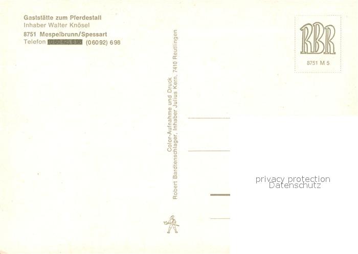 73045896 Mespelbrunn Gaststaette zum Pferdestall im Schloss Mespelbrunn Terrasse postalisch nicht gelaufen Erhaltung siehe scans [WerneD78] KatCode: 11110009671141