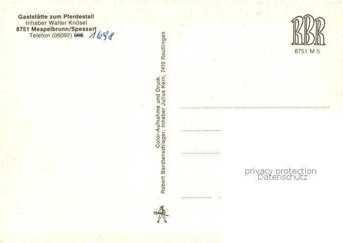 73666327 Mespelbrunn Restaurant zum Pferdestall postalisch nicht gelaufen Erhaltung siehe scans [LiesaD40] KatCode: 11110009671141